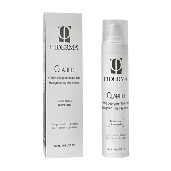 Fiderma crème dépigmentante favorise l’élimination des taches brunes (taches séniles, actiniques, Chloasma, Mélasma) et donne une couleur homogène au visage. Ses principes actifs vont réduire l’hyperproduction de mélanine et agir sur celle déjà existante. En autre, l’acide ascorbique, dans la formule, permet d’avoir une importante action anti-oxydante et d’agir sur les signes du vieillissement cutané.