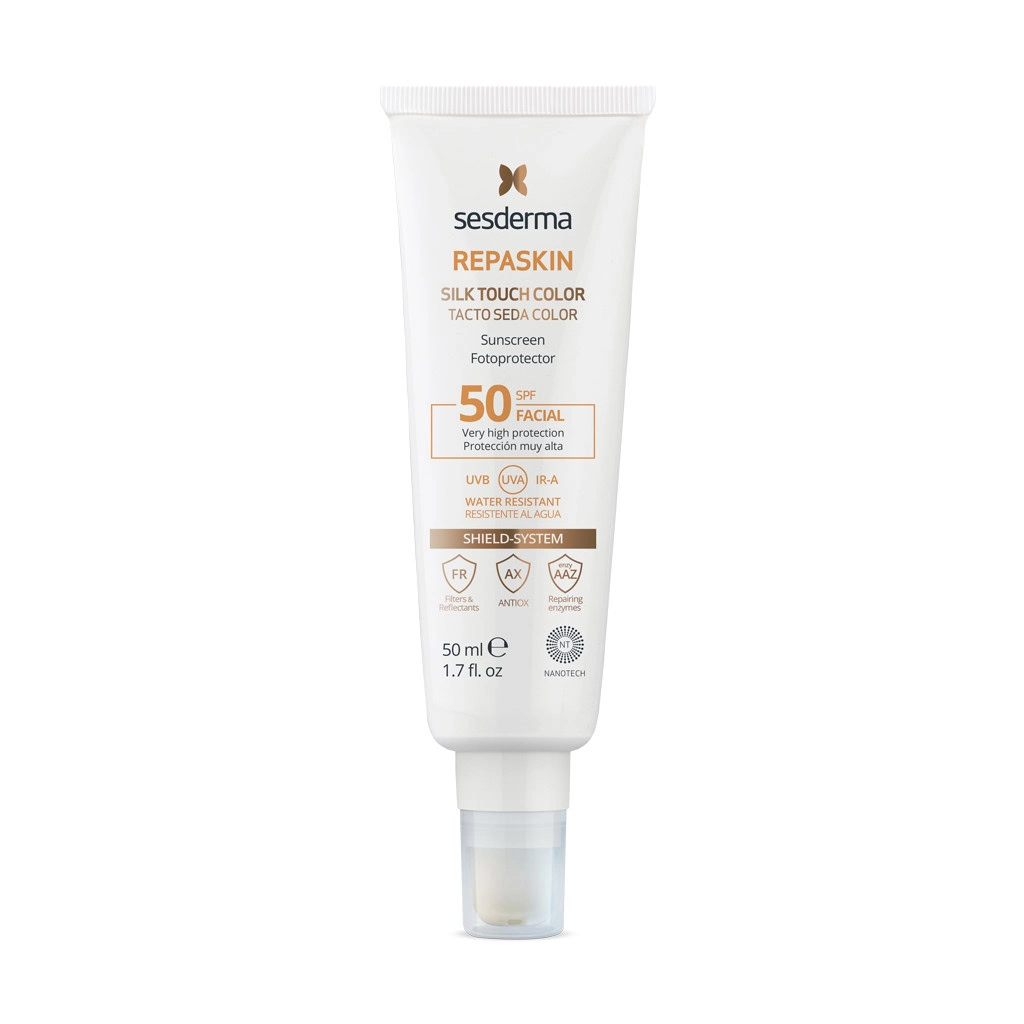 Sesderma Repaskin Toucher Soie SPF50+ est un écran solaire à base de filtres chimiques et physiques qui offre une protection optimale à la peau.