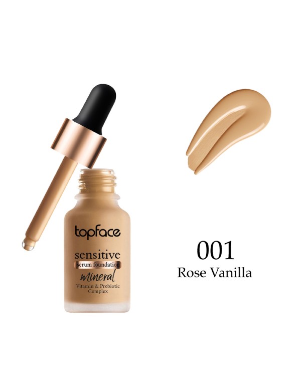 Topface Sensitive Mineral Serum Foundation est une fond de teint liquide légère et hydratante, formulée avec un complexe minéral et du squalène pour une apparence saine et éclatante de la peau.